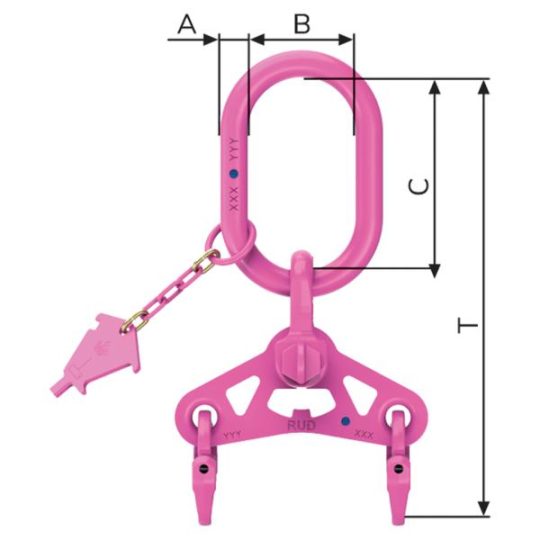VIP – Master link for assemblies with VIP – balancers. When using two units of 2 leg slings, where by one of which is equipped with a balancer (VWK-2S) and both master links are in the crane hook, the calculation of the capacity can be based on 4 bearing slings (DGUV Rule 109-017) provided the load is symmetrical and the inclination angle is max 45°. Hence an increment of the WLL.