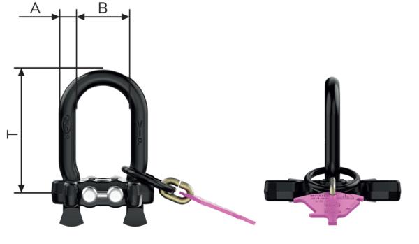 Master link with an integrated shortening option specially developed for the 4mm VIP lifting chain. With the pressing of the locking bolt the chain crucifix is freed and the chain can be mounted and respectively be adjusted to the desired length.